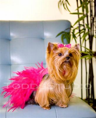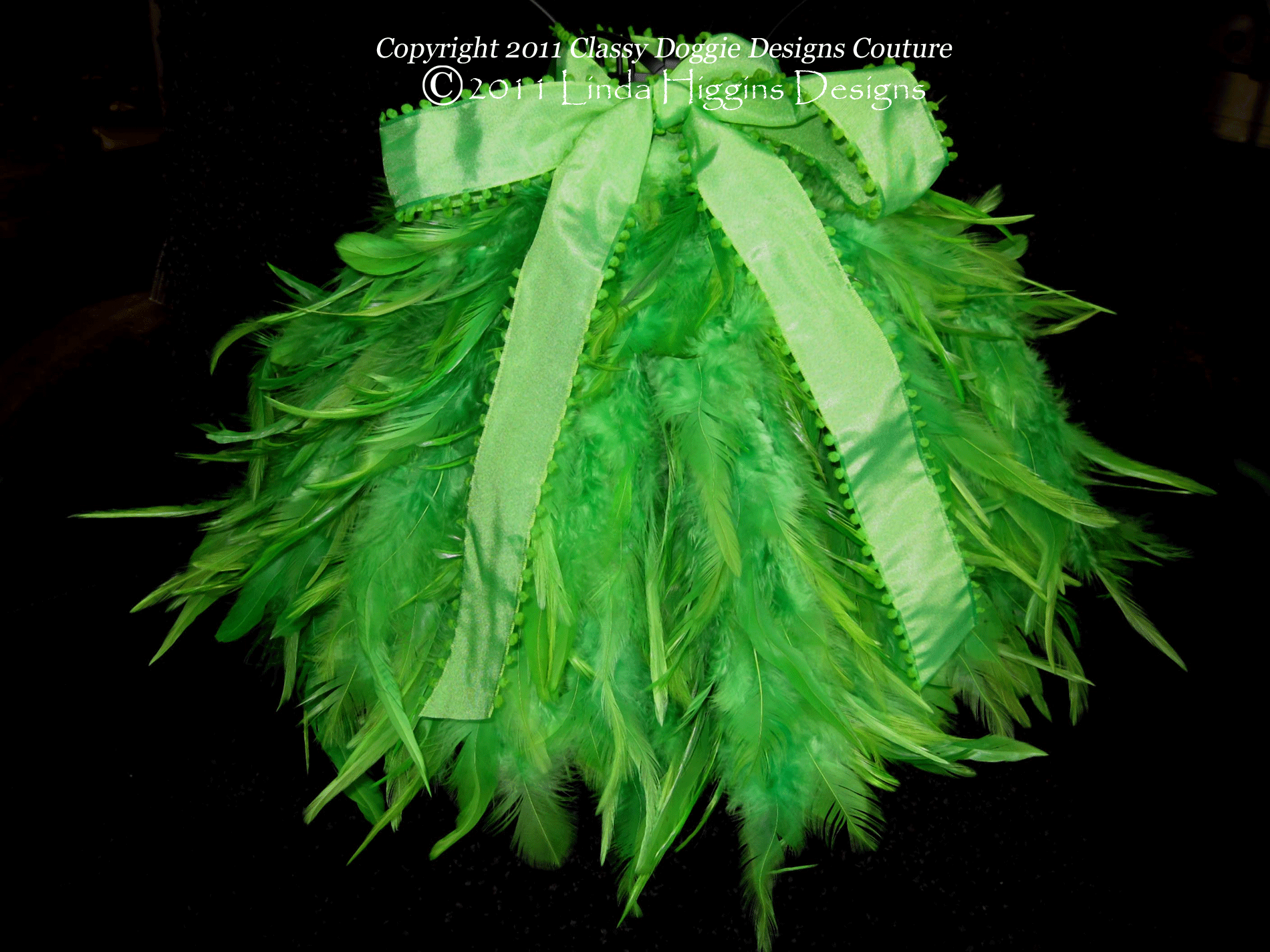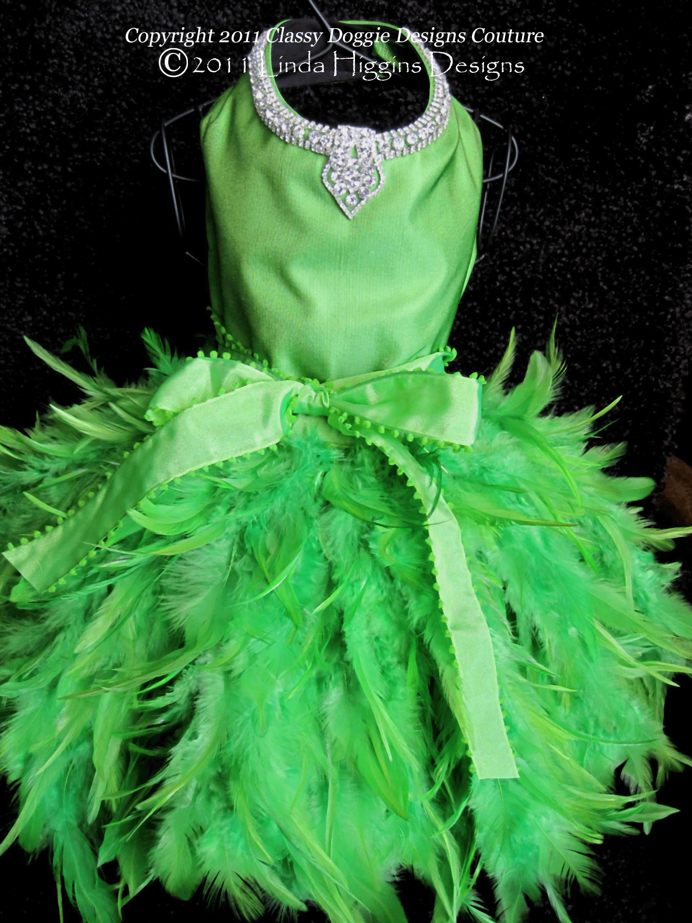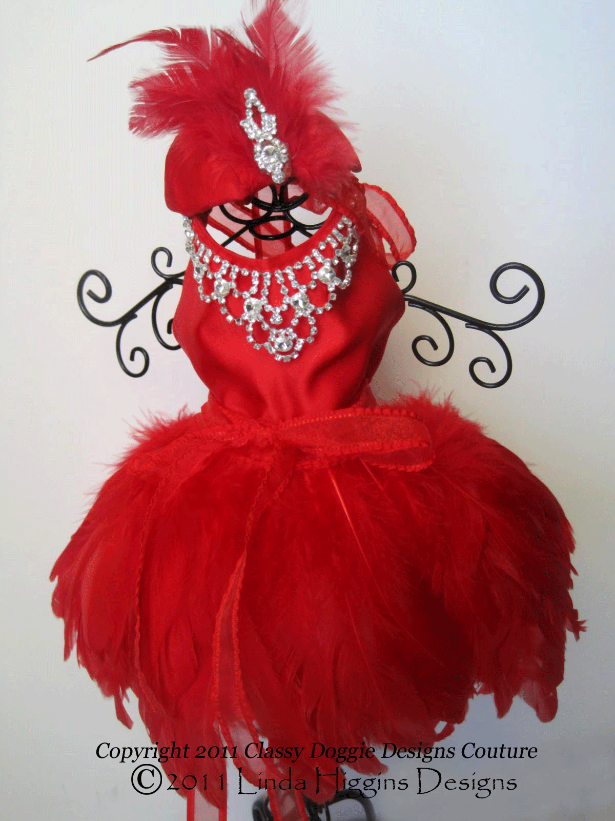 Hot pink satin dress with tie on feather skirt. Jeweled neckline, imported fabric.