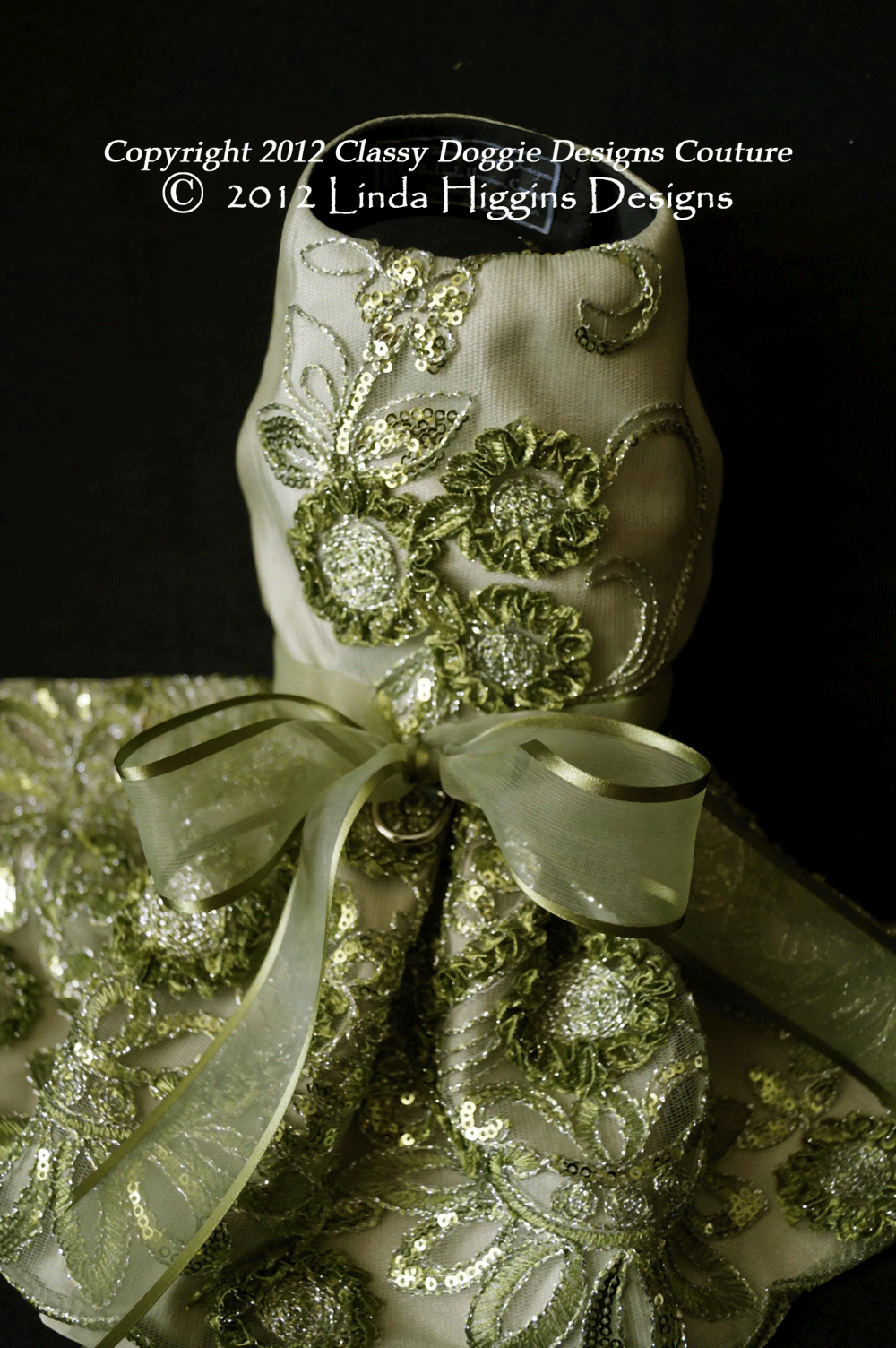 The above photo of Corinne shows the true color ofthis dress. Heavily sequined skirt with silk ribbon flowers, Double skirt, underskirt and bodice made out of Silk.