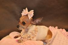 100% fine cotton, Lots of bling to this one. Bowis a hair bow at the neck. Chi's can't wear hair bow's so we put them on the neck to dress it up some. Dress with D-Rings.